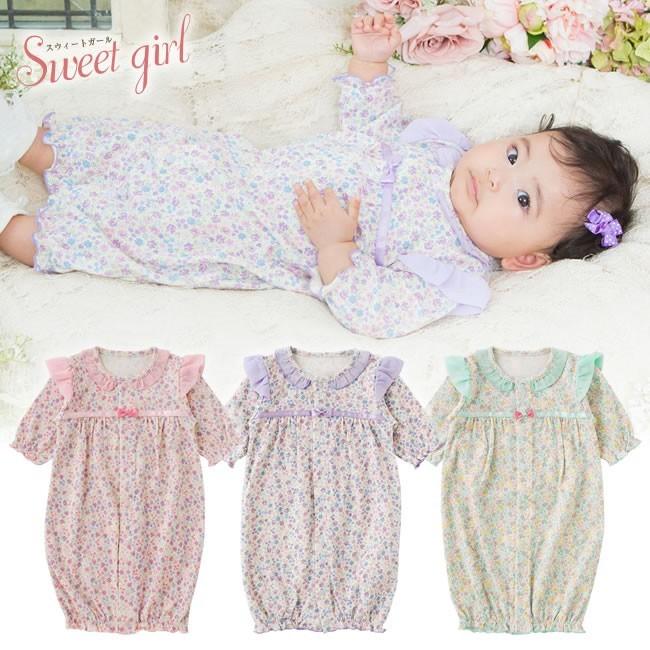 ベビー服 赤ちゃん 服 ベビー ツーウェイオール 女の子 新生児 出産祝い 出産準備 スウィートガール 小花柄シフォンフリル新生児ツーウェイオール P51 Chuckle 通販 Yahoo ショッピング